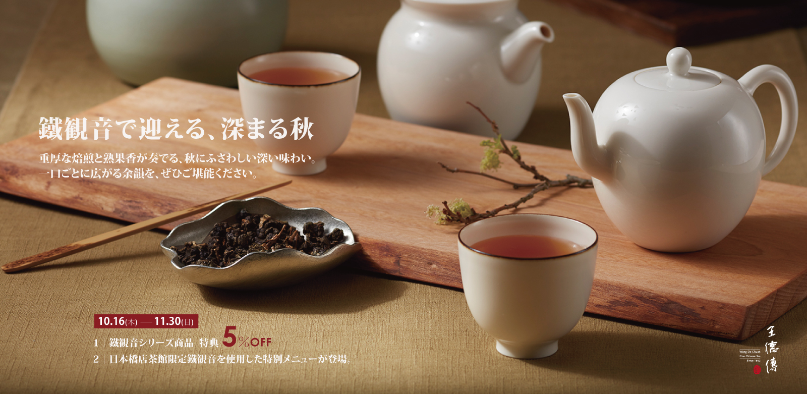 王德傳について 王德傳ストーリー 品質へのこだわり 店舗案内 ご利用ガイド 初めての方へ ショッピングガイド よくあるご質問 お問い合わせ お知らせ お知らせ 商品一覽 カテゴリー 初めてのお勧め お好みのお茶をお楽しみください 最も人気のある台湾茶 台湾高山産地厳選ウーロン茶 德傳百年名作ウーロン茶 台湾特有ウーロン茶 台湾特有品種ウーロン茶 フレーバーティー 紅茶 プーアール茶 ティーバッグセット 手作りティーバッグセット 茶器 ギフト お茶と道具セット 缶入りお茶ギフト ミニお茶ギフト 袋詰めお茶ギフト プーアル茶(茶餅)ギフト お茶講座 価格から探す ~ 3,000円 3,000円 ~ 5,000円 5,000円 ~ 8,000円 8,000円 ~ 10,000円 10,000円 ~ 15,000円 15,000円 ~ 20,000円 20,000円 ~ 30,000円 30,000円 ~ 贈り物 カテゴリー パッケージで選ぶ お茶と道具セット 缶入りお茶ギフト ミニお茶ギフト 袋詰めお茶ギフト プーアル茶(茶餅)ギフト 価格から探す ~ 3,000円 3,000円 ~ 5,000円 5,000円 ~ 8,000円 8,000円 ~ 10,000円 10,000円 ~ 15,000円 15,000円 ~ 20,000円 20,000円 ~ 30,000円 30,000円 ~ 季節限定 カテゴリー 秋冬におすすめお茶 価格から探す ~ 3,000円 3,000円 ~ 5,000円 5,000円 ~ 8,000円 8,000円 ~ 10,000円 10,000円 ~ 15,000円 15,000円 ~ 20,000円 20,000円 ~ 30,000円 30,000円 ~ 定期便 カテゴリー ティーバッグセット 価格から探す ~ 3,000円 3,000円 ~ 5,000円 5,000円 ~ 8,000円 8,000円 ~ 10,000円 10,000円 ~ 15,000円 15,000円 ~ 20,000円 20,000円 ~ 30,000円 30,000円 ~ 王德傳について 王德傳ストーリー 品質へのこだわり 店舗案内 ご利用ガイド 初めての方へ ショッピングガイド よくあるご質問 お問い合わせ お知らせ お知らせ ログイン/登録 w2Commerce DEMO SITE 詳しく検索 ログイン 会員登録はこちら かんたん会員登録はこちら マイページ 注文履歴・発送状況 お気に入り メールマガジン ショッピングカート 0点 / ¥0 ショッピングカート カートに商品がありません。 ヘルプ はじめての方へ お問い合わせ よくある質問 プライバシーポリシー 店舗一覧 / / トピック 2025/08/06 21:56:42 お茶の知識 自然農法と伝統製法で蘇る、クラシックな台湾茶の風味「澄甘涼喉(のどを潤す澄み切った甘さ)」 /Contents/FeaturePage/nature.1.jpg 2025/04/15 19:27:00 お茶の知識 寒い季節にぴったり。36時間じっくり炭火で焙煎した手作り炭焙(たんぱい)烏龍(ウーロン)茶 /Contents/FeaturePage/36.2.jpg 2025/07/06 11:18:16 お茶の知識 おいしいプーアール茶の条件は、産地・原料・ブランド /Contents/FeaturePage/likebuyingahousePC01.jpg View All ランキング 台湾高山産地厳選ウーロン茶 阿里山金萱ウーロン茶30g(赤ミニ缶) ¥1,620(税込) 台湾特有ウーロン茶 凍頂ウーロン茶30g(赤ミニ缶) ¥1,940(税込) ティーバッグセット ティーバッグセット-フォルモサ名作ウーロン茶セット15入 ¥3,780(税込) 台湾高山産地厳選ウーロン茶 厳選阿里山ウーロン茶30g(赤ミニ缶) ¥2,700(税込) 台湾高山産地厳選ウーロン茶 阿里山ウーロン茶30g(赤ミニ缶) ¥2,270(税込) 台湾高山産地厳選ウーロン茶 梨山ウーロン茶30g(赤ミニ缶) ¥3,460(税込) 台湾高山産地厳選ウーロン茶 阿里山金萱ウーロン茶100g ¥4,540(税込) 台湾特有ウーロン茶 凍頂ウーロン茶100g ¥5,400(税込) 台湾特有品種ウーロン茶 金萱ウーロン茶100g ¥3,460(税込) 台湾特有ウーロン茶 北埔東方美人30g ¥3,460(税込) 100%原片原葉使用 特選台湾茶 每月定期便 台湾茶ブランド「王徳傳茶荘」は百年磨かれた職人の心を百年受け継がれてきた製法に込めていますので、 一杯のお茶からは茶の本質と産地特有の風情が感じられます。 每月定期便ではお好みのお茶を毎月ご自宅へお届けします。お茶と共に優雅なひと時を過ごしながら、 お茶の香りと台湾の風情をお楽しみになれます。 詳しく見る カテゴリーから探す 台湾ウーロン茶 プーアール 紅茶 フレーバーティー ティーバッグセット 茶器 徳をもって人に伝え 茶をもって友に介す 王德傳茶荘の物語の由来は1862年までさかのぼります。創業者の王俺尚が清の時代の同治元年(1862)に中国大陸の福建省から台湾に渡り、台湾の首都だった台南に茶問屋を構えたのが始まりです。 創業当初から百年余り、一貫して選りすぐりの茶葉を炭火で焙煎し、茶葉それぞれが持つ最高の風味を引き出します。茶の性質と口当たりをより際立たせる焙煎を心掛け、その茶葉に適したタイミングを見極めて発酵を止め、それぞれ個性豊かな茶葉に仕上げています。焙煎の仕方を茶葉に合わせて変えることで、「香り」と「味わいが持つたたずまい」を余すところなく生かし、筋の通ったコクのある、奥ゆかしく香り高い最高の茶葉をお届けします。 茶文化の発信に取り組む王德傳は2019年9月、初の複合体験スペースを東京の日本橋にオープンします。3つのエリアに分かれ、ショップエリアでは台湾産のウーロン茶、紅茶、緑茶、茶器などを提供、茶芸館エリアは「ゴンフー茶」コーナーと「オリジナルティー」コーナーがあります。「工夫茶(ゴンフー茶)」コーナーでは德傳専属の茶芸師が実演。「オリジナルティー」コーナーでは、ウーロン茶ベース